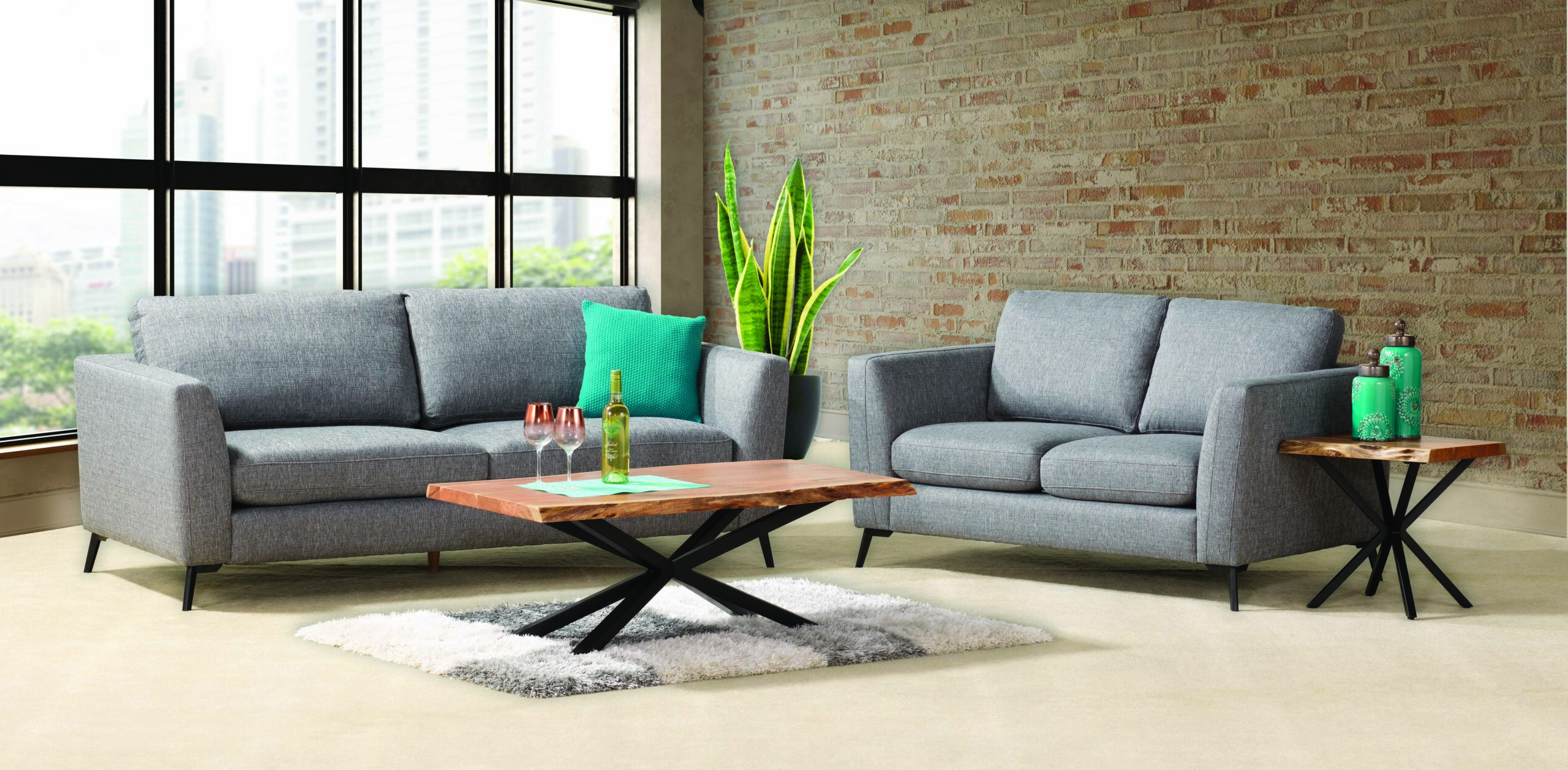 ASCOT 2.5 Seater and 2 Seater in Aurora Fabric with Metal Legs