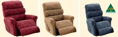 Australian Made Recliner Suite Recliners 3 Sizes Lift Chairs and More in wide range of fabrics and can be custom made to order. Visit Your Local Store
