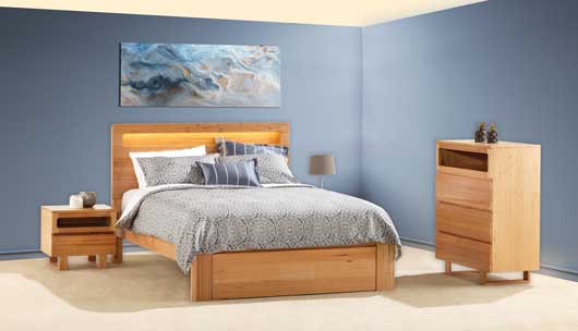 The GLOW Bedroom Collection is made of Tassie Oak.