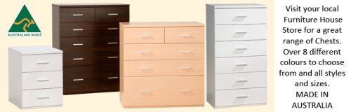 Wide range of Australian Made Chests Dressers Bedsides Tallboys and over over 12 fantastic colours to choose from.
