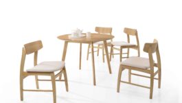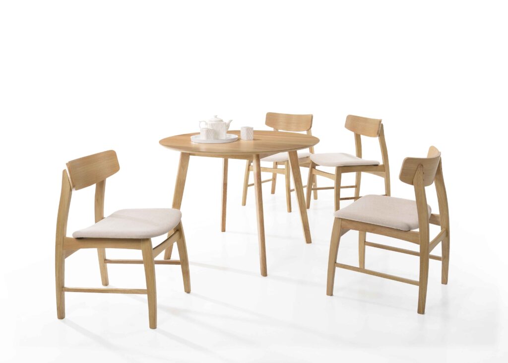 JESSIE Round 1000cm 5pc Table with JESSIE Dining Chairs in Natural with Beige Fabric Chairs