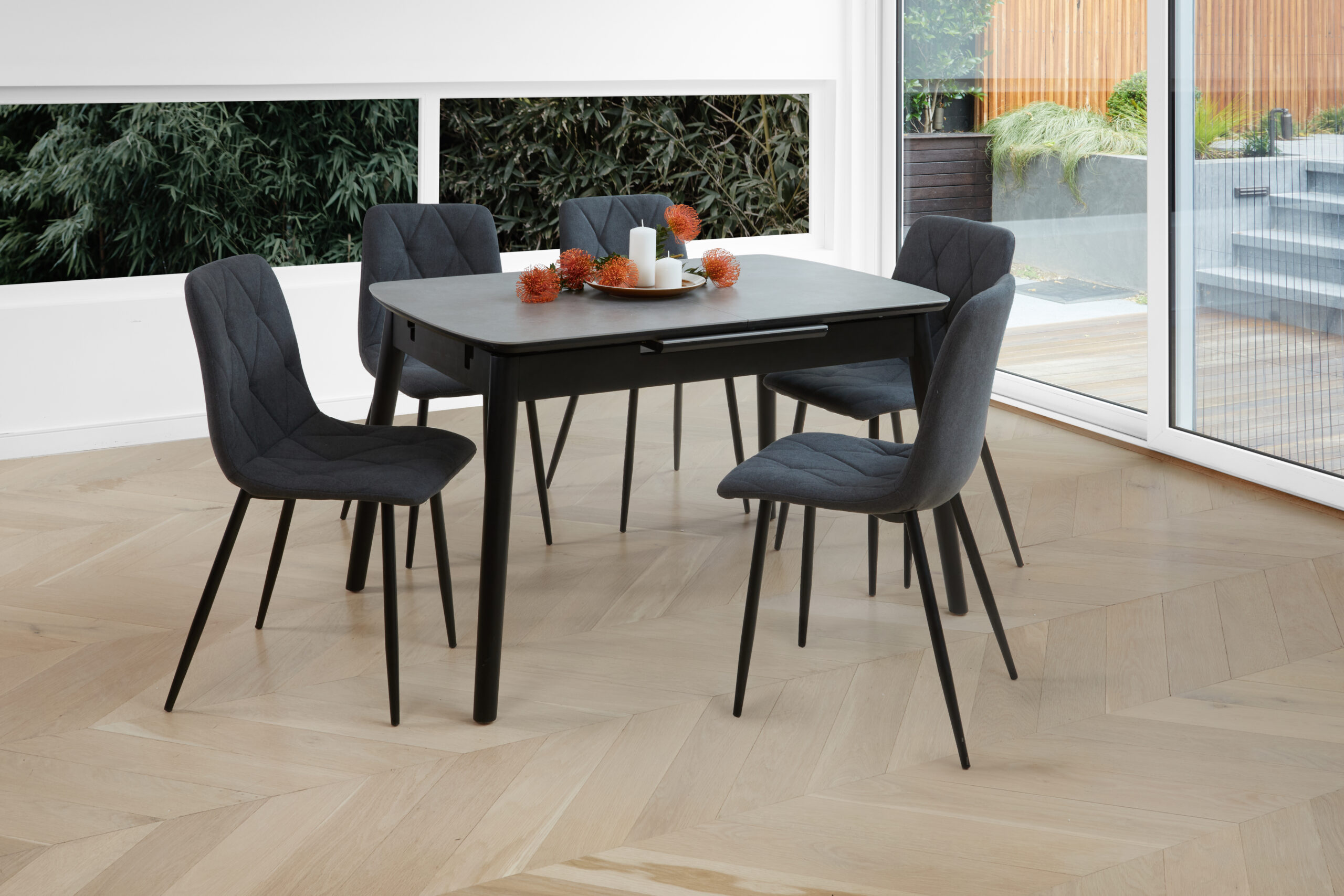 MILA Extension Dining Table with GALAXY Dining Chairs.