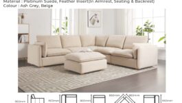 Comes in ASh, Grey or Beige Platinum Suede with Feather insert in Armrest, Seating and Backrest.