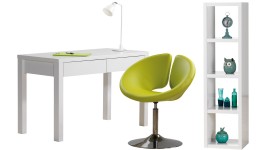 Faith Modern 2 Drawer Work Desk – White High Gloss, Antique Oak and Graphite